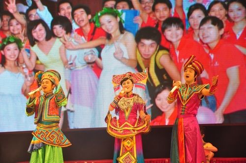 亲情之爱,,,,,,,员工之爱,,,,,,,企业之爱,,,,,,,一分公司男女三重唱《9001诚信金沙之爱》凝聚成博大的9001诚信金沙之爱