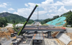 - 5月29日,,,,,,,,随着最后一片40米T梁的顺利架设,,,,,,,,连贺3标公罗口特大桥左幅顺利贯通,,,,,,,,标志着整体施工向年度通车目标任务迈出了坚实一步。。。。。。。